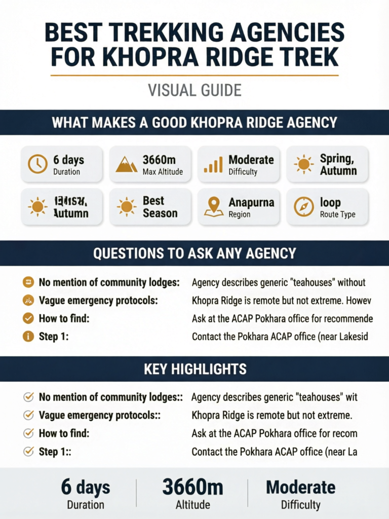 How to find: Ask at the ACAP Pokhara office for recommended agencies for the Khopra Community Lodge Circuit.