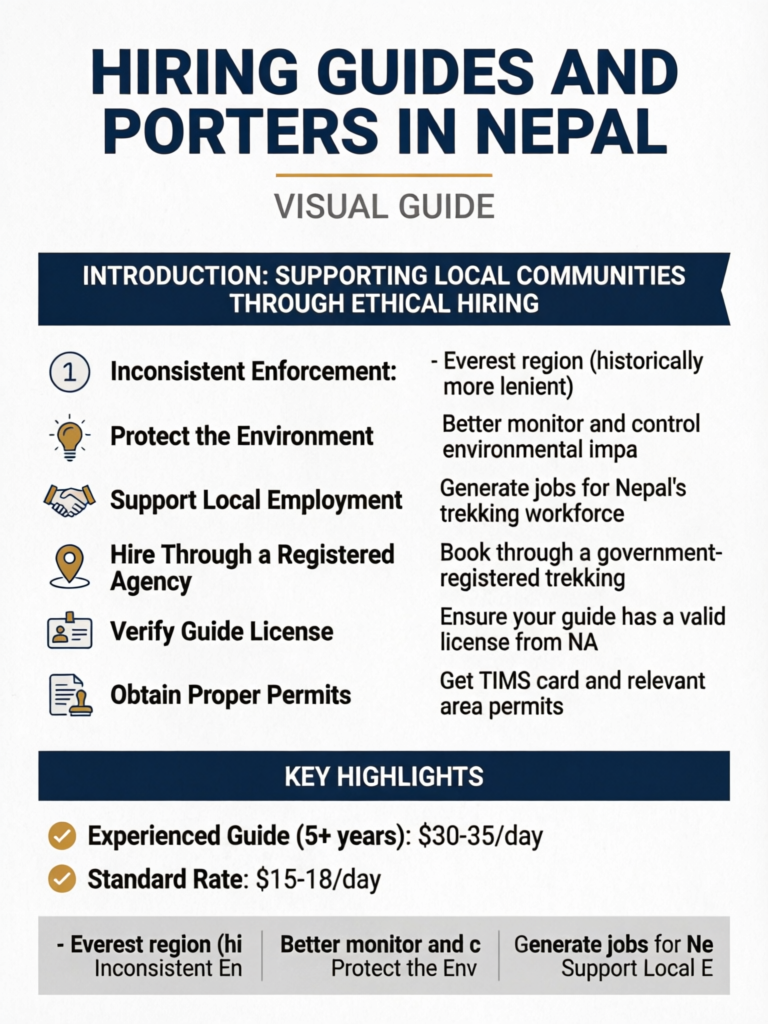 This guide will help you navigate the process of hiring guides and porters while ensuring you contribute positively to Nepal's mountain communities.