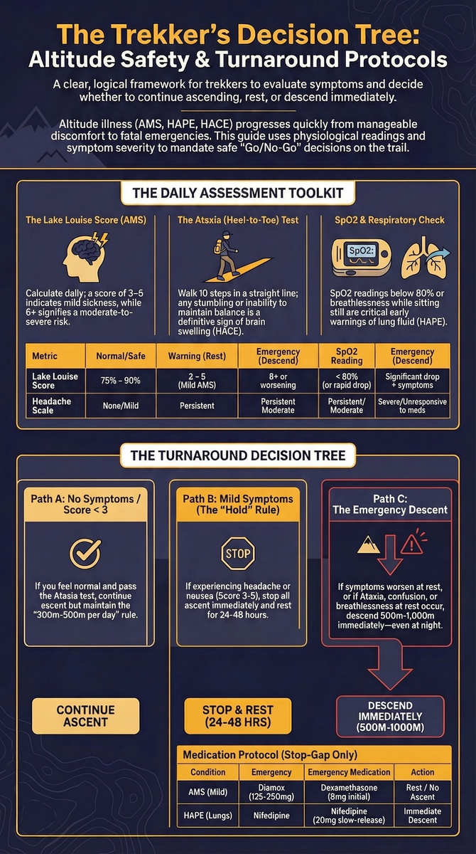 The trekkers who die from altitude illness are almost never those who didn't know the symptoms. They're the ones who knew the symptoms, recognized them, and chose to continue anyway. This guide can give you knowledge, but you must supply the wisdom to act on it.